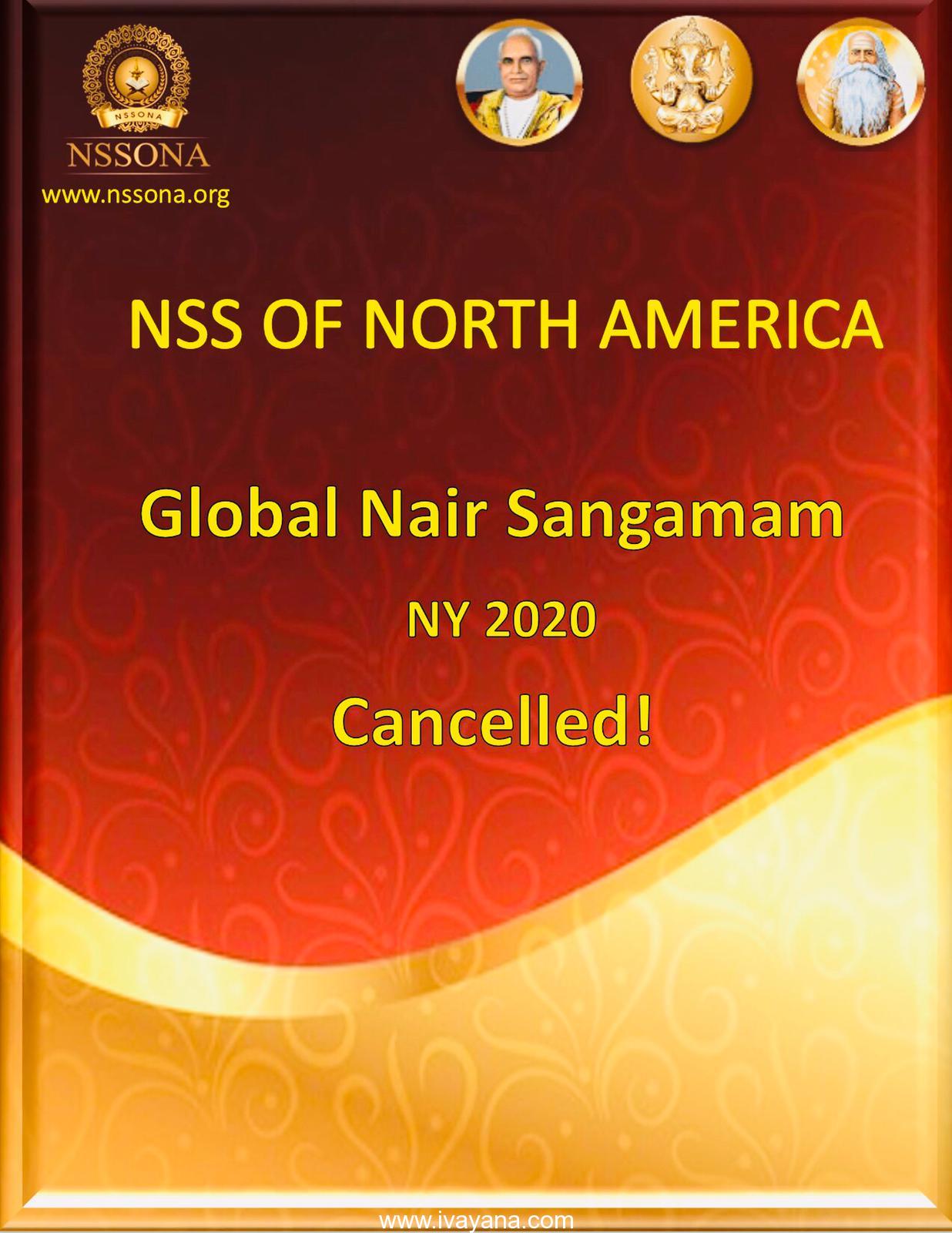 കൊറോണ വൈറസ് മൂലം നമ്മുടെ സമൂഹം വളരെ അധികം വിഷമം അനുഭവിച്ചുകൊണ്ടിരിക്കുന്ന ഈ അവസരത്തിൽ എൻ. എസ് . എസ് ഓഫ് നോർത്ത് അമേരിക്കയുടെ ജൂലൈ മൂന്നുമുതൽ അഞ്ചുവരെ ന്യൂ യോർക്കിൽ വെച്ച് നടത്താനിരുന്ന ഗ്ലോബൽ കൺവെൻഷൻ ക്യാൻസൽ ചെയ്തു രജിസ്റ്റർ ചെയ്തവർക്ക് മുഴുവൻ തുകയും റീഫണ്ട് ചെയ്യുവാൻ തീരുമാനിച്ചതായി പ്രസിഡന്റ് സുനിൽ നായർ അറിയിച്ചു .