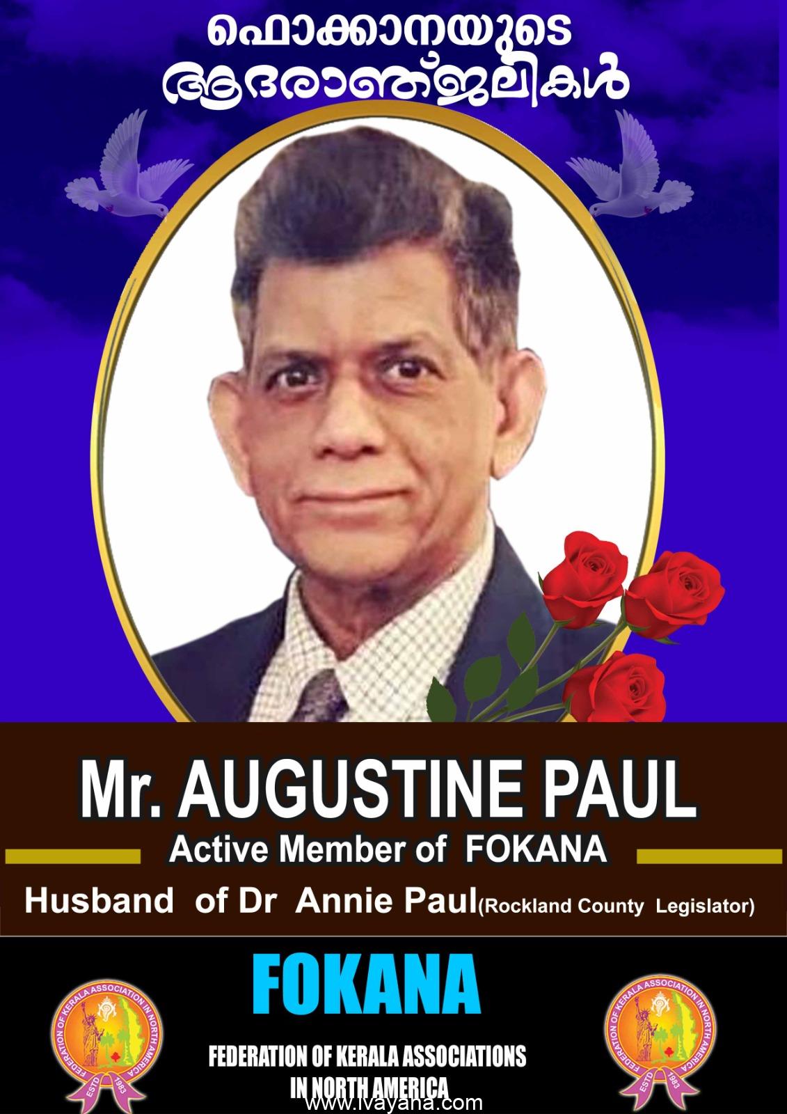 ഫൊക്കാനയുടെ ആദ്യകാലം മുതലേയുള്ള പ്രവർത്തകൻ ആണ് അഗസ്റ്റിൻ പോൾ, മിക്ക ഫൊക്കാന കൺവെൻഷനിലും അദ്ദേഹത്തിന്റെ നിറസാനിധ്യം നാം അനുഭവിച്ചു അറിഞ്ഞിട്ടുണ്ട് . ആൽബനി കൺവെൻഷനിൽ മാഗസിന്റെ എഡിറ്റർ ആയും മികവുറ്റ പ്രവർത്തനം കാഴ്ചവെച്ചിരുന്നു . ആനി പോളിന്റെ രാഷ്ടീയ ഉയർച്ചയിൽ മുഖ്യ പങ്ക് വഹിച്ചത് അഗസ്റ്റിൻ പോൾ ആണ്