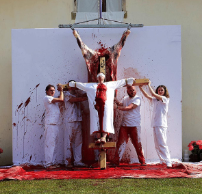 സൂര്യോദയസമയത്ത് മുഴങ്ങുന്ന മണിനാദം 3-ാം ദിവസത്തിന്റെ തുടക്കം ഗംഭീരമായി അറിയിച്ചു. ഘ്രാണ മുദ്രകളും ആദ്യത്തെ ക്രൂശീകരണ പ്രവർത്തനങ്ങളും ടോട്ടം മൃഗത്തെ (കാള) പ്രതീകാത്മകമായി കൊല്ലുന്നതും ഉച്ചകഴിഞ്ഞുള്ള ആദ്യ ഗ്രാൻഡ് ഫിനാലെയിലേക്ക് നയിച്ചു. ഒരു നീണ്ട ഘോഷയാത്രയ്ക്ക് ശേഷം, ചുറ്റുമുള്ള വയലുകൾ, തണുത്ത അസംസ്കൃത കാള, അതിന്റെ എല്ലുകൾ, പേശികൾ, ലിഗമെന്റുകൾ, ടെൻഡോണുകൾ എന്നിവ തുറന്നുകാട്ടി, അർദ്ധരാത്രിയിലെ വിപുലമായ സമാപനത്തിനായി കോട്ടയുടെ നടുമുറ്റത്തിന്റെ മധ്യഭാഗത്ത് അഭിനേതാക്കളെ കാത്തിരുന്നു. കുടലും മുന്തിരിയും തക്കാളിയും നിറച്ച്, രക്തം, ചൂടുവെള്ളം, സ്ലിം എന്നിവയാൽ പൊതിഞ്ഞ അഭിനേതാക്കൾ അലമുറയിട്ടു, “അസ്തിത്വപരമായ അധിക” എന്ന് വിളിക്കുന്ന “അസ്തിത്വപരമായ ആധിക്യം” എന്നതിലേക്ക് എത്താൻ സ്വയം പ്രേരിപ്പിച്ചു – എല്ലാം ഒന്നാകുന്നു, എല്ലാം ഒന്നാണ്.