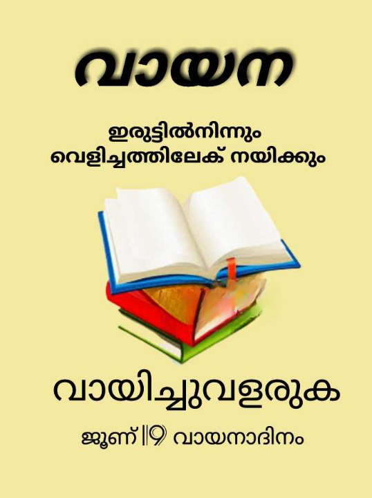 ജൂൺ 19 വായന ദിനം. അറിവിൻ പ്രകാശം ലോകമെങ്ങും പരത്താൻ അജ്ഞതയുടെ മൂടുപടം നീക്കാൻ നമുക്കൊന്നായ് കൈകോർക്കാം.