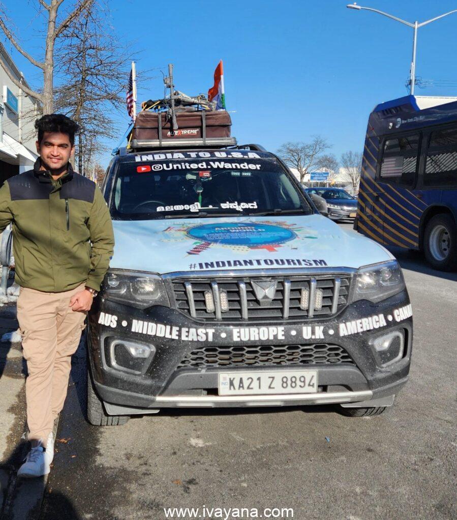 ന്യൂയോർക്ക്: ഒരു വർഷത്തിലധികമായി കർണാടക സംസ്ഥാനത്തെ മംഗലാപുരത്തു നിന്നും യാത്രതിരിച്ച് ഇന്ത്യൻ നിർമ്മിത മഹിന്ദ്ര എസ്.യു.വി. വാഹനം വിവിധ രാജ്യങ്ങളിലെ റോഡുകളിലൂടെ തനിയെ ഓടിച്ച് അരലക്ഷം കിലോമീറ്റർ താണ്ടുക എന്ന സാഹസികത ആർക്കെങ്കിലും സാധിക്കും എന്ന് പറഞ്ഞാൽ നമ്മിൽ പലർക്കും വിശ്വസിക്കാൻ സാധിക്കാത്ത കാര്യമാണ്. പതിനെട്ടോ ഇരുപതോ മണിക്കൂർ എയർകണ്ടീഷൻ ചെയ്ത വിമാനത്തിൽ യാത്ര ചെയ്ത് ഏഴാം കടലിനക്കരെ ന്യൂയോർക്കിലെത്തുക എന്നത് തന്നെ നമ്മിൽ പലർക്കും പേടിസ്വപ്നമാണ്. അത്തരമൊരു സാഹചര്യത്തിലാണ് സ്വന്തം ഭാര്യയേയും രണ്ട് പിഞ്ച് കുഞ്ഞുങ്ങളെയും വീട്ടിൽ തനിച്ചാക്കി ഉറ്റവരുടേയും ഉടയവരുടേയും സുഹൃത്തുക്കളുടേയും സാമിപ്യം വലിച്ചെറിഞ്ഞു അതിസാഹസിക യാത്രക്ക് തനിയെ ഇറങ്ങി തിരിച്ച ഒരു മുപ്പതു വയസ്സുകാരൻ നമുക്ക് മുമ്പിൽ അഭിമാന പാത്രമാകുന്നത്. മംഗലാപുരം സ്വദേശിയും ആർക്കിടെക്ട് ബിരുദ ധാരിയുമായ മുഹമ്മദ് സനിൻ എന്ന സനിനാണ് സാഹസികമായി ന്യൂയോർക്കിലെത്തിയ ഈ ഒറ്റയാൻ.