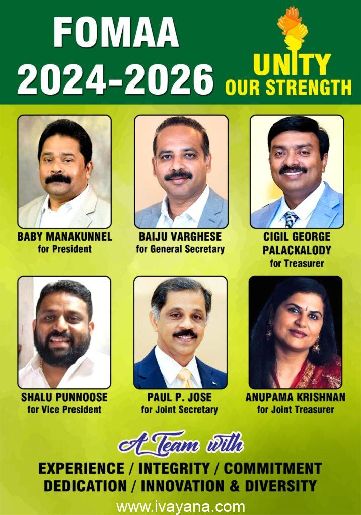 “ഫോമാ എന്ന പ്രസ്ഥാനത്തിൻറെ സർവ്വതോന്മുഖ പുരോഗമനത്തിനും, കൂടുതൽ മെച്ചപ്പെട്ട സാമൂഹിക-ജീവകാരുണ്യ പ്രവർത്തനങ്ങൾക്കും, യുവജനങ്ങളുടെ യൂത്ത് ഫോറം, വനിതകളുടെ വിമെൻസ് ഫോറം തുടങ്ങിയ ഫോറങ്ങളുടെ കൂടുതൽ വിപുലമായ പ്രവർത്തനങ്ങൾക്കും പുതുമയാർന്ന പല പദ്ധതികളും നടപ്പിലാക്കുവാൻ ‘ടീം യുണൈറ്റഡ്’ പ്രതിജ്ഞാബദ്ധമാണ്. അതിനായി ഒറ്റക്കെട്ടായി പ്രവർത്തിക്കുന്നതിനാണ് ‘ടീം യുണൈറ്റഡ്’ നിങ്ങളുടെ മുൻപിൽ വോട്ടഭ്യർഥനയുമായി സമീപിച്ചിരിക്കുന്നത്. ഞങ്ങൾ ഈ ചുരുങ്ങിയ കാലം കൊണ്ട്തന്നെ യോജിച്ച് പ്രവർത്തിക്കുന്നതിന് മാനസികമായി തയ്യാറെടുത്തിരിക്കുകയാണ്. അതിനാൽ ഓഗസ്റ്റ് 8 മുതൽ 11 വരെ ഡൊമിനിക്കൻ റിപ്പബ്ലിക്കിൽ പുന്റാ കാനയിലെ അതിമനോഹരമായ ബാഴ്സലോ ബവാരോ പാലസ് ഫൈവ് സ്റ്റാർ ഫാമിലി റിസോർട്ടിൽ നടക്കുന്ന ഇന്റർനാഷണൽ കൺവെൻഷനിൽ എല്ലാ സംഘടനാ പ്രതിനിധികളും പങ്കെടുത്ത് ഞങ്ങൾ എല്ലാവര്ക്കും വോട്ട് തന്ന് വിജയിപ്പിക്കണമെന്ന് അഭ്യർത്ഥിക്കുന്നു” പ്രസിഡൻറ് സ്ഥാനാർഥി ബേബി മണക്കുന്നേൽ വന്നു കൂടിയ എല്ലാ സംഘടനാ ഭാരവാഹികളോടുമായി അഭ്യർഥിച്ചു.