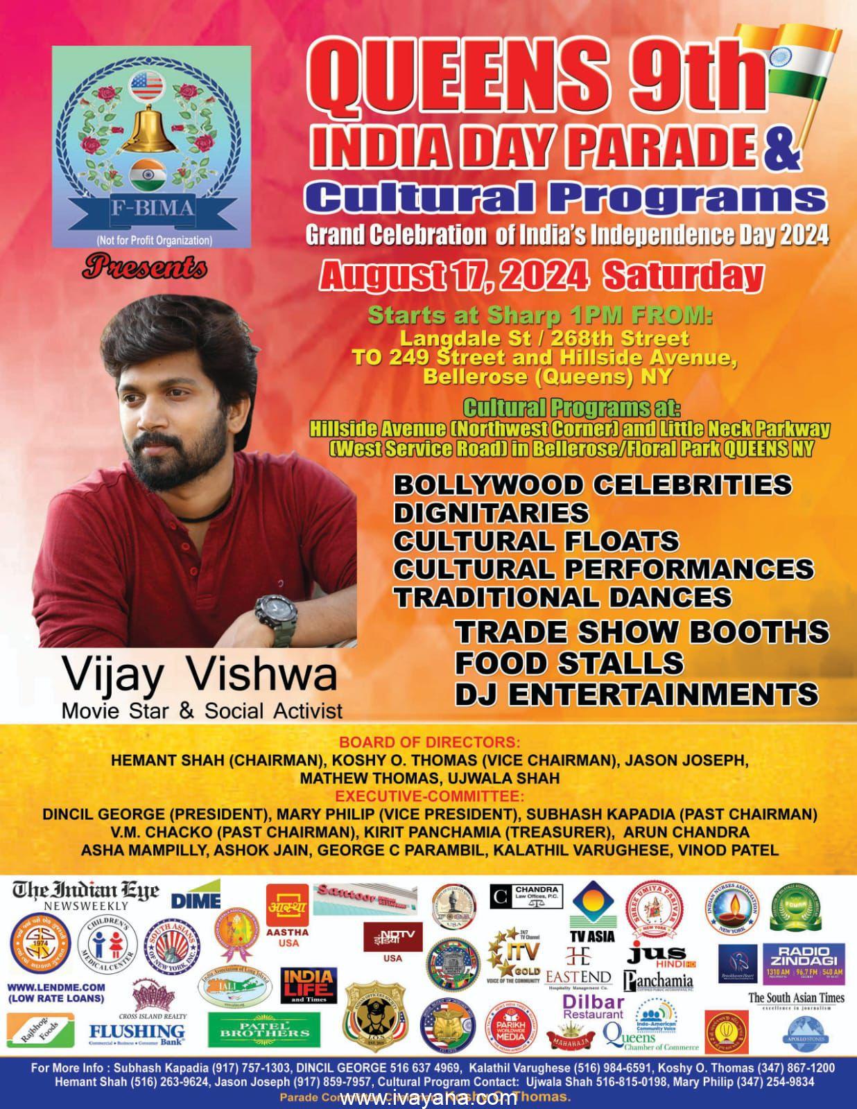 എല്ലാ മലയാളീ സംഘടനകളും, മലയാളികളും ക്വീൻസ് ഇന്ത്യ ഡേ പരേഡിൽ പങ്കെടുത്ത് നമ്മുടെ മാതൃരാജ്യത്തോടുള്ള, സ്നേഹവും ഐക്യദാർഢ്യവും പ്രകടിപ്പിക്കുവാൻ ഈ വസരം വിനിയോഗിക്കണമെന്ന് സംഘാടകർ പ്രത്യേകമായി അറിയിച്ചു.