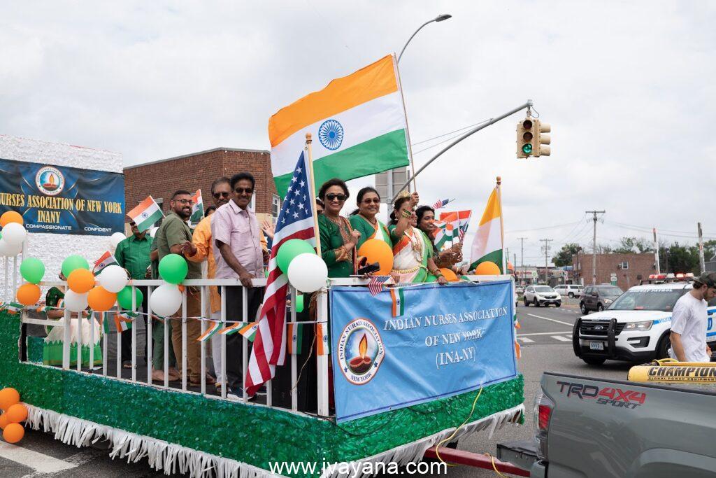 വിവിധ സംഘടനകളുടെ ബാനറുകൾ വഹിച്ച പ്രവർത്തകരും ഇന്ത്യൻ പതാകയാൽ അതിമനോഹരമായി അലങ്കരിതമായ ഫ്ളോട്ടുകളും ഹിൽസൈഡ് വീഥിയിലൂടെ മന്ദം മന്ദം നീങ്ങിയപ്പോൾ പ്രാദേശികരായ ജനങ്ങളും ധാരാളം ഇന്ത്യൻ ജനതയും റോഡിനു ഇരുവശവുമായി അണിനിരന്ന് അഭിവാദ്യം അർപ്പിച്ചത് നയന മനോഹരമായി. പരേഡിൻറെ മുൻ നിരയിൽ ന്യൂയോർക്ക് പോലീസ് ഡിപ്പാർട്ട്മെന്റിൻറെ രണ്ട് പോലീസ് കുതിരകളും പോലീസുകാരും, പോലീസ് മോട്ടോർബൈക്ക് ട്രൂപ്പും, ന്യൂയോർക്ക് പോലീസിൽ പ്രവർത്തിക്കുന്ന യൂണിഫോം അണിഞ്ഞ ഇന്ത്യൻ വംശജരുടെ “ദേശി പോലീസ് അസ്സോസ്സിയേഷൻ” അംഗങ്ങളും ഇന്ത്യൻ പതാകയും അമേരിക്കൻ പതാകയുമായി അണിനിരന്നപ്പോൾ പരേഡ് പ്രൗഡ്ഢഗംഭീരമായി.