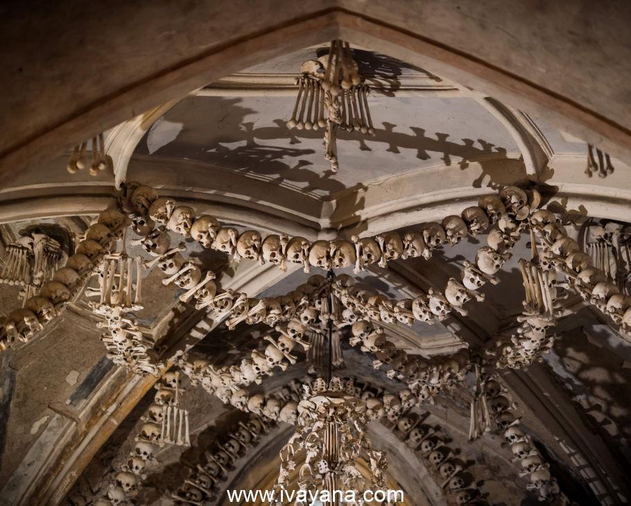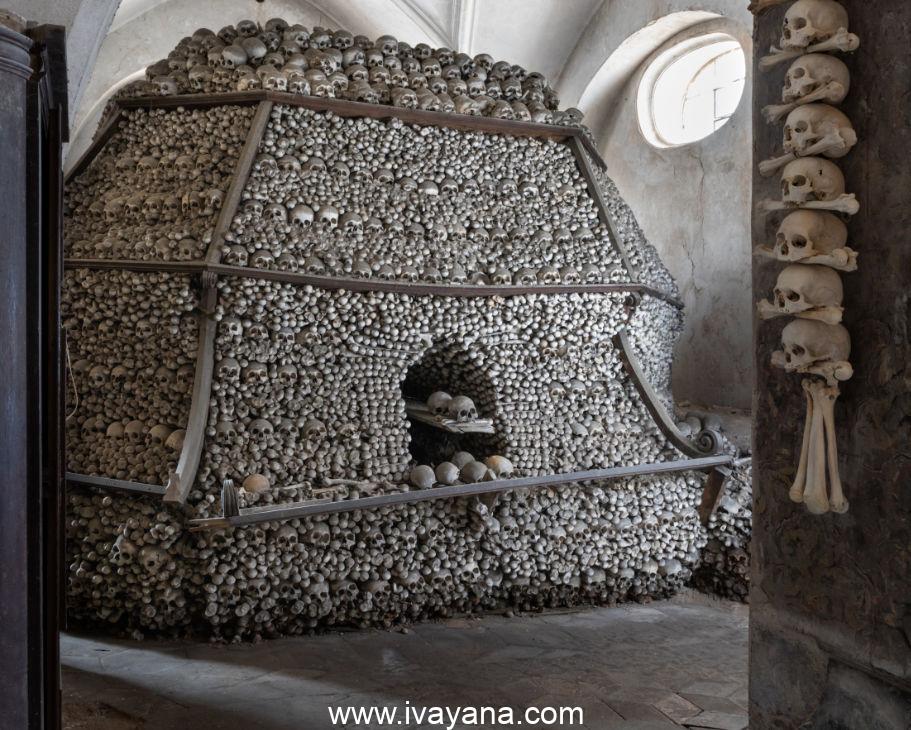 പ്ലേഗിനും കുരിശുയുദ്ധത്തിനും ഇരയായവരുടെ അസ്ഥികൾ പഴയ കെട്ടിടത്തിന്റെ ചുവരുകളെ അലങ്കരിക്കുന്നു.