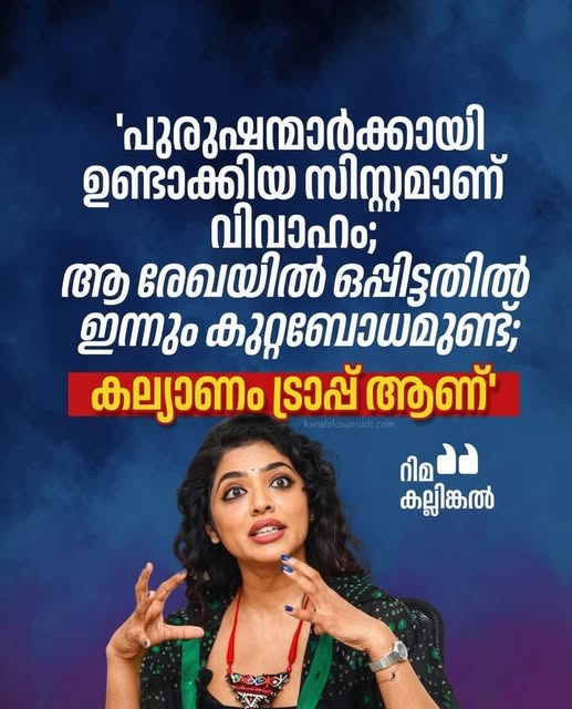 റിമ കല്ലിങ്കൽ പറഞ്ഞതിനോട് ഞാൻ 100% യോജിക്കുന്നു.അവർ പറഞ്ഞ കോൺടെക്സ്റ്റിൽ വേറെയാണങ്കിലോ? ഈ വിമർശിക്കുന്നവർ എന്ത് ചെയ്യും..അവർക്ക് മുന്നോട്ട് പോകാൻ ഒരു ഒപ്പിന്റെ ആവശ്യം പോലുമില്ല എന്നും വായിച്ചൂടെ?