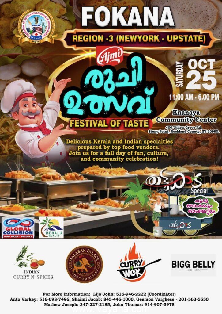 രാവിലെ 10 മണിമുതൽ ആരംഭിക്കുന്ന ഫുഡ് ഫെസ്റ്റിവൽ വൈവിധ്യമാർന്ന രുചികളെ വിവിധ ഇന്ത്യൻ റസ്റ്റോറന്റുകൾ ഒരുമിച്ച് ഒരു കുടക്കിഴിൽ കൊണ്ടുവരുന്നു എന്ന പ്രേത്യേകത കുടി ഈ ഫുഡ് ഫെസ്റ്റിവലിനുണ്ട് . രുചിമുകുളങ്ങളെ ത്രസിപ്പിക്കാൻ നമ്മൾ എല്ലാവരും ഒത്തുകൂടുബോൾ നിങ്ങളും ഉണ്ടാകണം. കുടത്തെ 3 മണിമുതൽ കുട്ടികളുടെ കലോത്സവം,കണ്ണഞ്ചിപ്പിക്കുന്ന വിവിധ കലാപരിപാടികൾ തുടങ്ങി നിരവധി പരിപാടികൾ ഉൾപ്പെടുത്തിയാണ് റീജണൽ കണ്വെന്ഷൻ ചിട്ടപ്പെടുത്തിയിരിക്കുന്നത്.