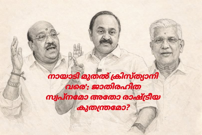 കേരളത്തിന്റെ നവോത്ഥാന ചരിത്രത്തിൽ ‘നായാടി മുതൽ നമ്പൂതിരി വരെ’ എന്ന മുദ്രാവാക്യം വിഭാവനം ചെയ്തത് ജാതീയമായ ഉച്ചനീചത്വങ്ങൾ അവസാനിപ്പിക്കാനും ഒരു ഏകീകൃത മലയാളി സമൂഹത്തെ വാർത്തെടുക്കാനുമായിരുന്നു. എന്നാൽ, ഇന്ന് ‘നായാടി മുതൽ ക്രിസ്ത്യാനി വരെ’ എന്ന പുതിയ കൂട്ടുകെട്ടുകളെക്കുറിച്ച് ചർച്ച ചെയ്യുമ്പോൾ, അത് ഒരു ജാതിരഹിത സമൂഹത്തിലേക്കുള്ള പ്രയാണമാണോ അതോ തിരഞ്ഞെടുപ്പ് രാഷ്ട്രീയത്തിലെ കേവലമൊരു ‘വോട്ട് ബാങ്ക്’ തന്ത്രമാണോ എന്ന് നാം ഗൗരവമായി ചിന്തിക്കേണ്ടിയിരിക്കുന്നു. അധികാരത്തിന്റെ ഇടനാഴികളിൽ സ്വാധീനം ഉറപ്പിക്കാൻ സമുദായ നേതാക്കൾ നടത്തുന്ന നീക്കങ്ങൾ പലപ്പോഴും താഴെത്തട്ടിലുള്ള സാധാരണക്കാരന്റെ നീതിക്ക് വേണ്ടിയല്ല, മറിച്ച് തങ്ങളുടെ വിലപേശൽ ശേഷി വർദ്ധിപ്പിക്കാൻ വേണ്ടിയാണെന്നത് തർക്കമില്ലാത്ത വസ്തുതയാണ്.