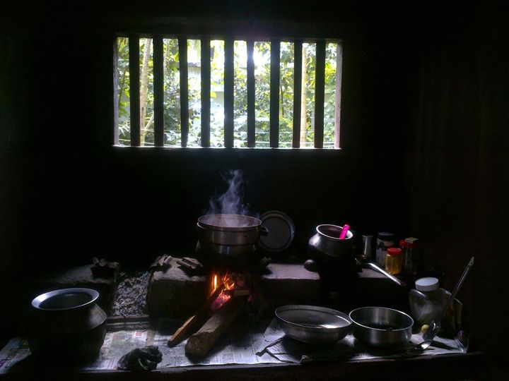 എന്നിട്ട് പലകയിട്ട് അടുപ്പിന്റെ ചുവട്ടില് ഇരുന്ന് ഭക്ഷണം ഉണ്ടാക്കും.