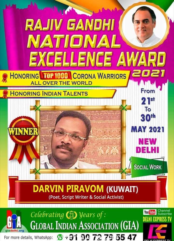 ഇത്രയും പ്രവർത്തനങ്ങൾക്ക് ചുക്കാൻ പിടിക്കുന്ന ഡാർവിൻ പിറവത്തിന് ലഭിച്ച നാഷണൽ അവാർഡ് സ്നേഹവീട് കേരളയുടെ അംഗീകാരമായ് കണ്ട് പിറവത്ത് മീറ്റിങ്ങ് വിളിക്കാവാൻ തീരുമാനിച്ചിരിക്കുകയാണ് വൈസ് പ്രസിഡൻ്റ് അജികുമാർ ഉൾപ്പെടെ സംഘാടകർ. ചെരുപ്പിൻ്റെ വാറിനും, ജി.ഐ.എ യുടെ രാജീവ് ഗാന്ധി നാഷണൽ അവാർഡിനും ഡാർവിൻ പിറവത്തിനും സ്നേഹവീട് കേരളക്കും ആശംസകൾ.