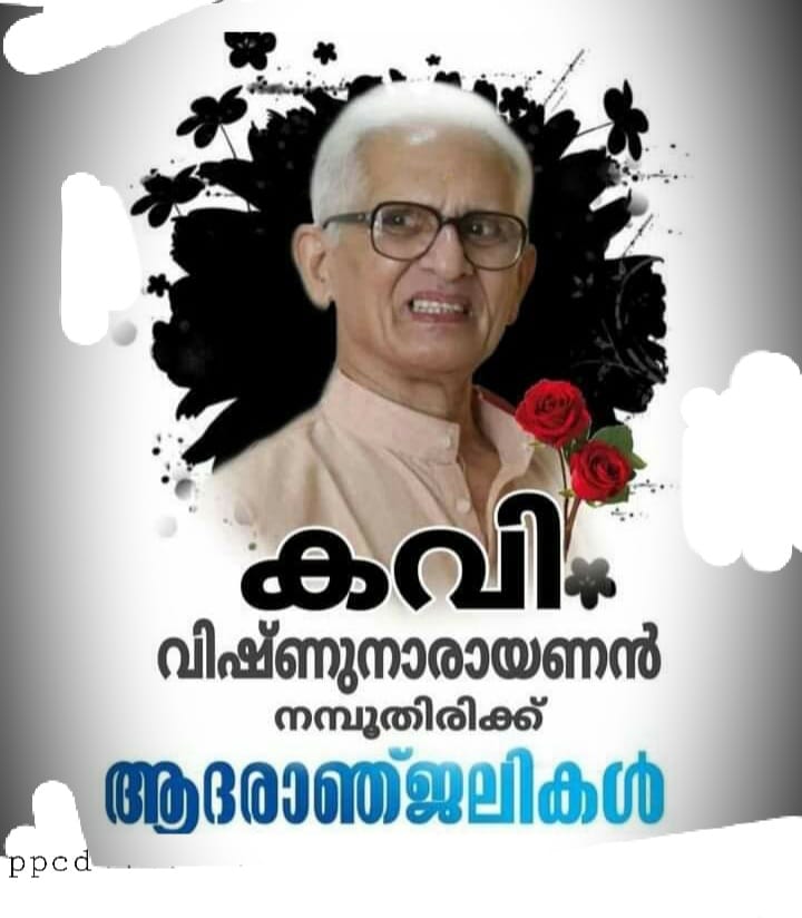 പ്രമുഖ മലയാള കവി വിഷ്ണുനാരായണ ൻ നമ്പൂതിരി വിഷ്ണുപാദത്തിൽ വിലയം.(ജനനം – ജൂൺ 2 1939). ഭാഷാപണ്ഡിതൻ, വാഗ്മി, സാംസ്കാരിക ചിന്തകൻ എന്നീ നിലകളിലും പ്രശസ്ത നാണ്.