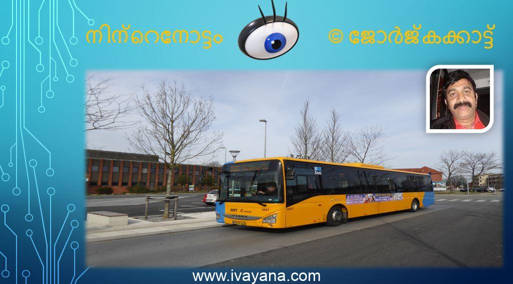 സെൻട്രൽ ബസ് സ്റ്റേഷൻ – തന്റെ ബസിനായി കാത്തിരിക്കുന്നു, ഞാൻ കയറി വിൻഡോയിലെ സീറ്റിന്റെ പുറകിൽ ഇരിക്കുന്നു. എന്നെ കൂടാതെ, ഒരു കൊച്ചു കുട്ടിയുമൊത്തുള്ള ഒരു യുവ അമ്മയും ഒരു ഭീമാകാരമായ സ്ട്രോളർ (ചെറിയ കുട്ടികളെ കിടത്തി തള്ളിക്കൊണ്ടു പോകുന്ന ഒരു വണ്ടി ) തൊട്ടടുത്ത് , കണക്ക് ഗൃഹപാഠത്തെക്കുറിച്ച് ഉറക്കെ പരാതിപ്പെടുന്ന രണ്ട് കൗമാരക്കാരും കൂടെ മുന്നിൽ ഇരിക്കുന്ന ഒരു വൃദ്ധനുമുണ്ട്. ഡ്രൈവർ പുറത്തു തണുത്ത കാലാവസ്ഥയിൽ .. പുറത്ത് നിൽക്കുകയും അയാൾ പ്രവേശിക്കുന്നതിനുമുമ്പ് മറ്റൊരു സിഗരറ്റ് വലിക്കുകയും അതിനുശേഷം യാത്ര ആരംഭിക്കുകയും ചെയ്യുന്നു.