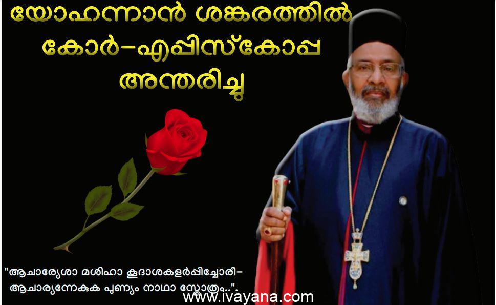 അവിഭക്ത അമേരിക്കൻ ഭദ്രാസനത്തിലെ സീനിയർ വൈദികരിൽ പ്രമുഖനും, നോർത്ത് ഈസ്റ് അമേരിക്കൻ ഭദ്രാസനത്തിലെ ലോങ് അയലൻറ് ലെവിറ്റ് ടൗൺ സെൻറ് തോമസ് മലങ്കര ഓർത്തോഡോക്സ് ഇടവകയുടെ സ്ഥാപക വികാരിയുമായ വെരി റവ. ഡോ. യോഹന്നാന് ശങ്കരത്തില് കോര് എപ്പിസ്കോപ്പ (85) ഇന്ന് (ശനിയാഴ്ച രാത്രി 8.50 ന്യുയോർക്കിൽ നിര്യാതനായി. കഴിഞ്ഞ ഏതാനും മാസങ്ങളായി വാർധക്യസഹജമായ അസുഖം മൂലം ഹോസ്പിറ്റലിൽ ചികിത്സയിലായിരുന്നു.